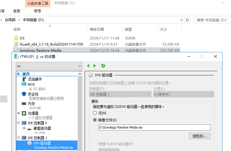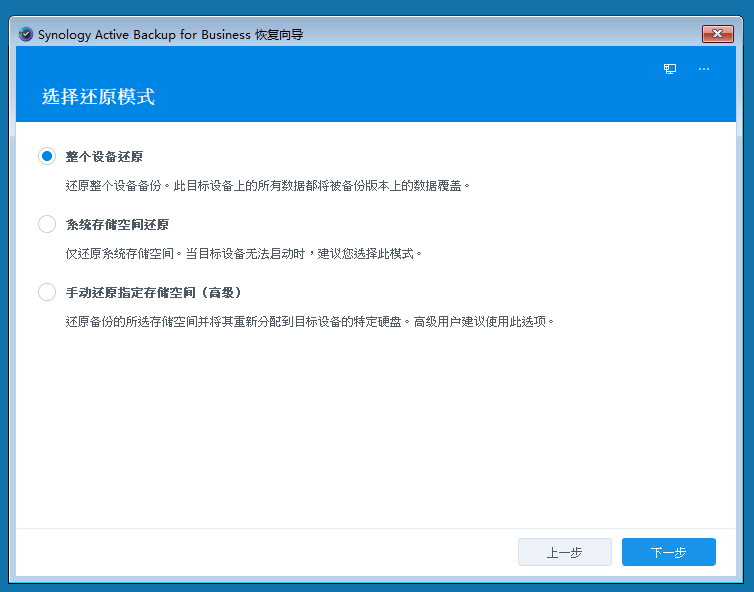 3、制作临时PE进行恢复,装机时使用的PE也可以,进带网络的PE模式下访问群晖网页,访问Active Backup for Business按提示进行还原。我这里因为是虚拟机选择了制作群晖的临时PE,制作教程可参考官方的指南:群晖官方恢复介质创建指南.pdf (如果访问不了,请检查你电脑是不是开了梯子,关掉)。如果是第一次制作,需要安装 Windows ADK 和 WinPE 软件包,软件会提示,跟着走就行。Active Backup for Business恢复程序 跟前面一样去官网搜索,或者在群晖还原界面里面根据提示下载。
